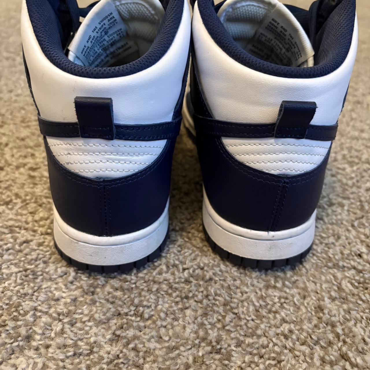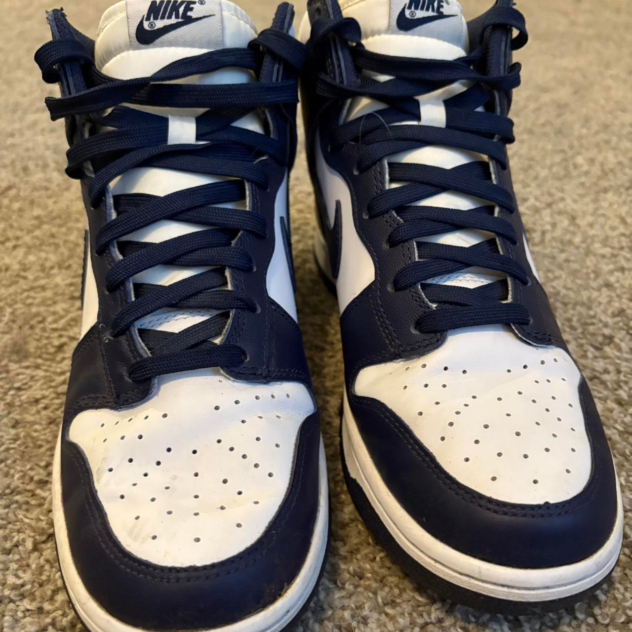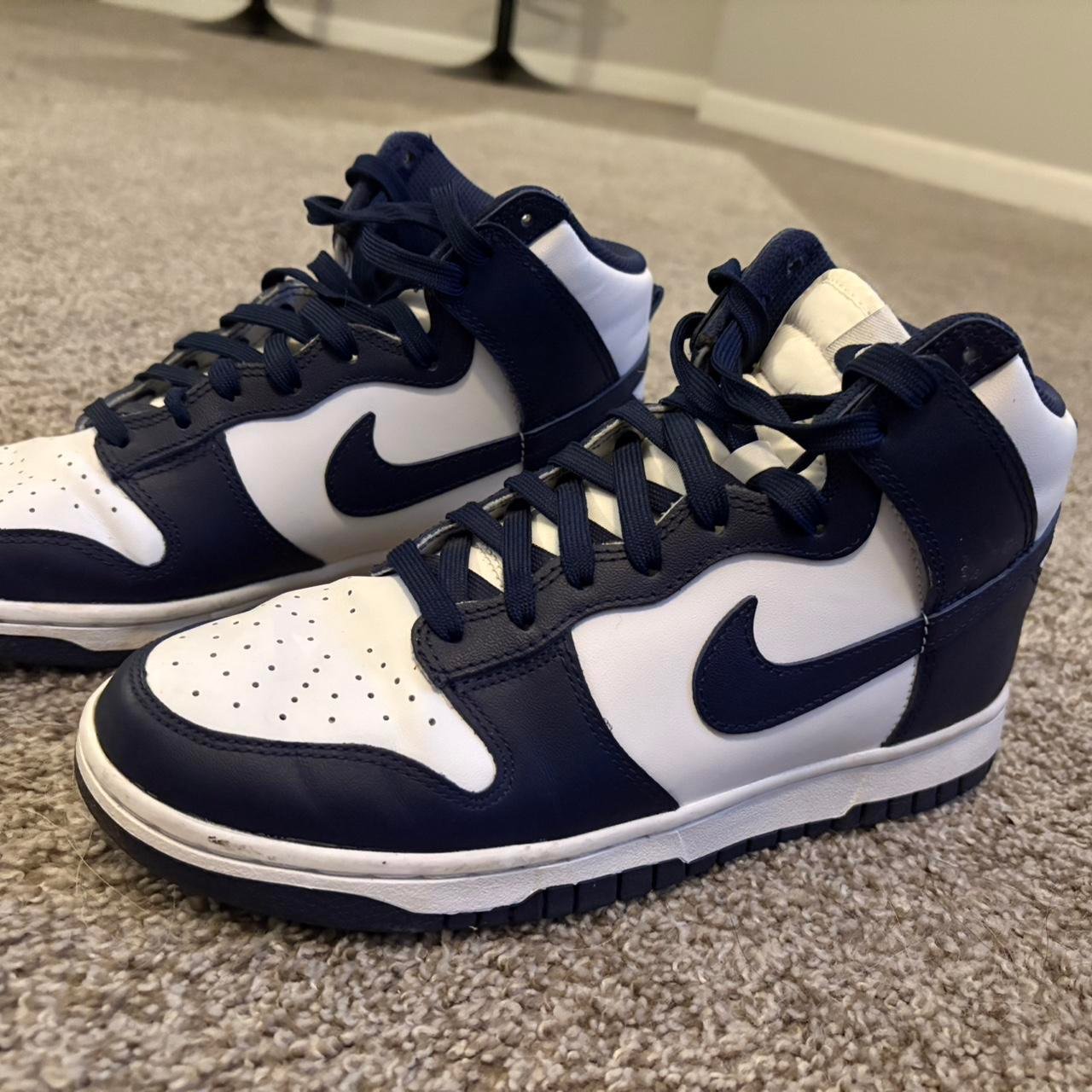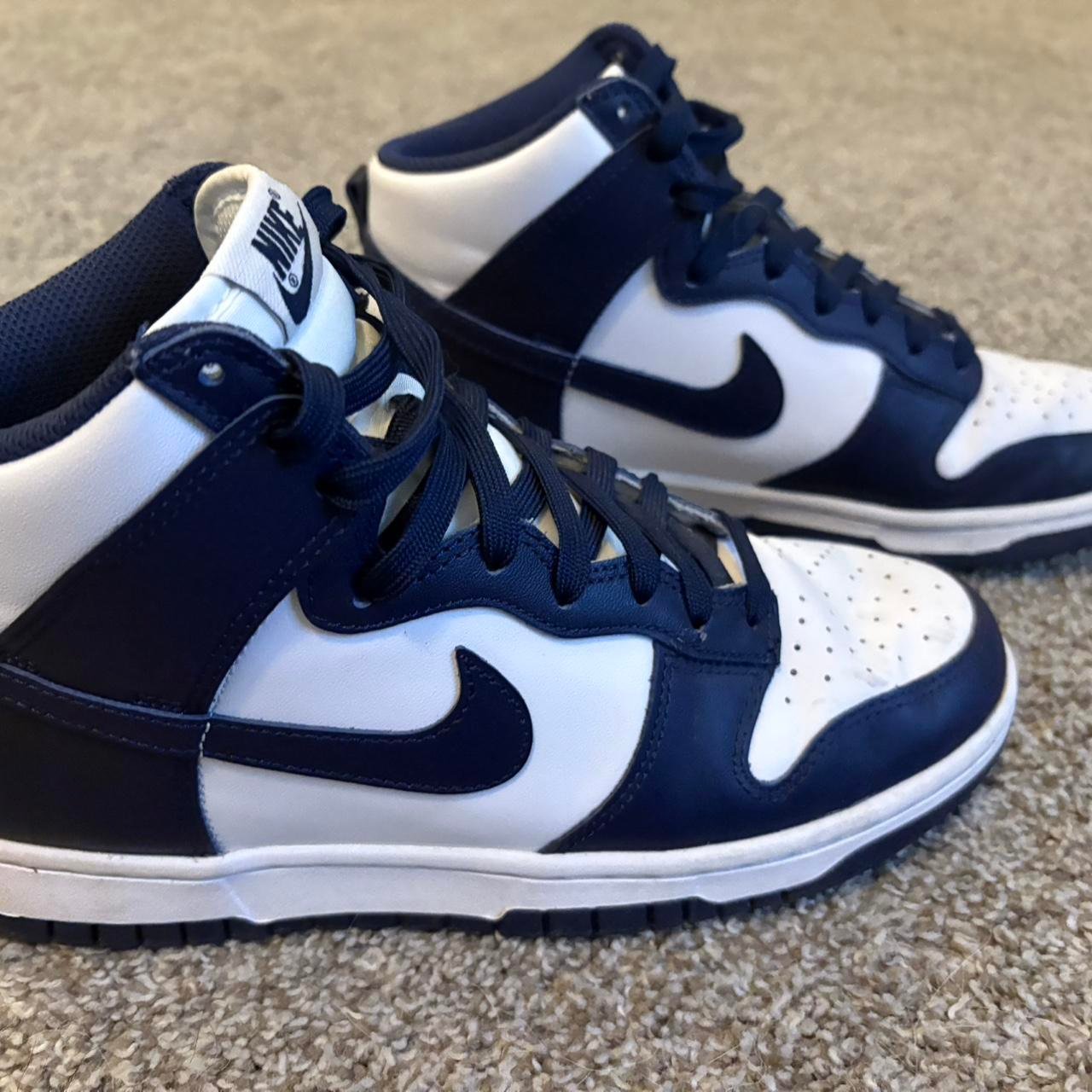 Be the first to review “Pre-Loved High-Top Navy Blue and White Nike Dunks Fits Size 7.5 Men or 9 Women’s”